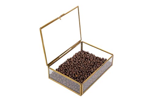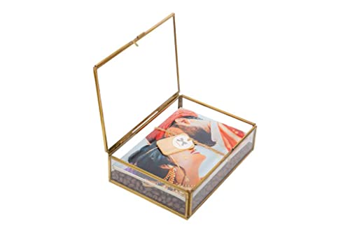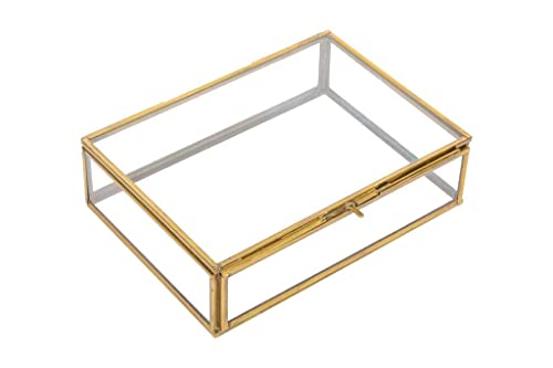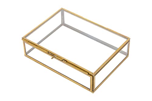 Class and Quality: Clear glass surrounded by golden brass. Clear glass display boxes perfect to use as a wedding box and a gift box in your first home together. Glass will air-slak and no color fading problem. Size: 4.5×3.5×1.5 inches / 11x9x4 cmVarious uses: earrings, finger rings, contact lenses, hair bands, treasure. It neatly organizes all your expensive things. Jewelry Box Jewelry Organizer Use it as a jewelry organizer and storage as a jewelry display. Makes it easy for you to keep your valuables safely and securely.Present for Friends: Great design often used as a great present for wedding, valentine’s day, wedding day, christmas. Easter. Handmade stained glass keepsake box made with lead free solder to protect you and the environment.EASY TO CLEAN AND WELL PACKED: Each item is well packaged and preserved in perfect condition. Made from durable and thick glass that’s easy to maintain, you can wipe down the organizer with a damp cloth.
