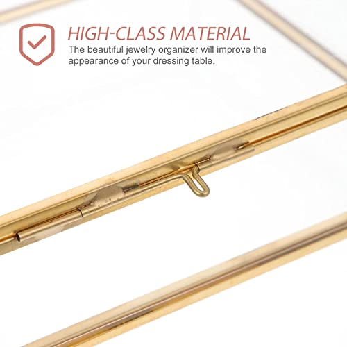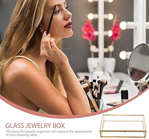 Small Glass Jewelry Box for Wedding Engagement Ring, Decorative Storage Glass Box Gold