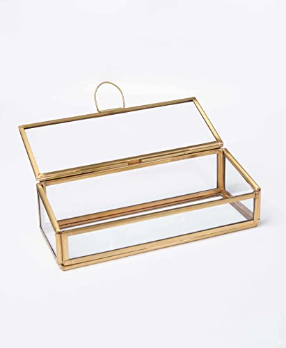 Art India Collections Tapered Glass & Brass Trinket Jewelry Box in Matt Gold 7x3x2.5″