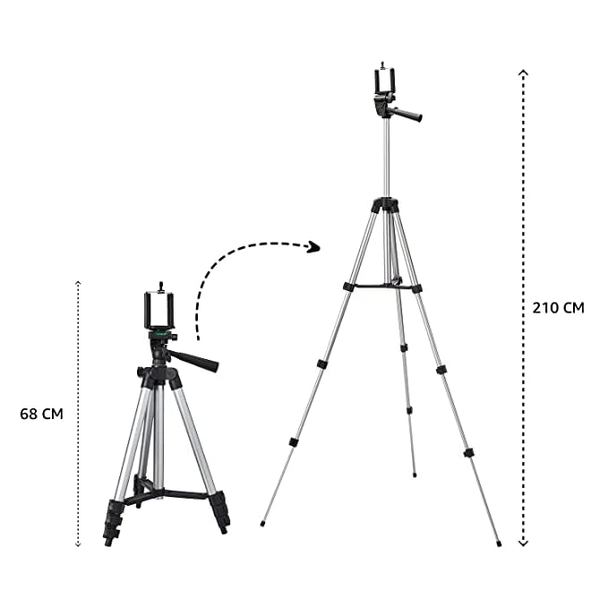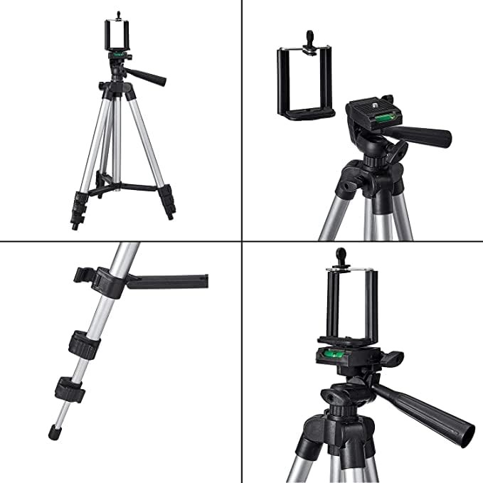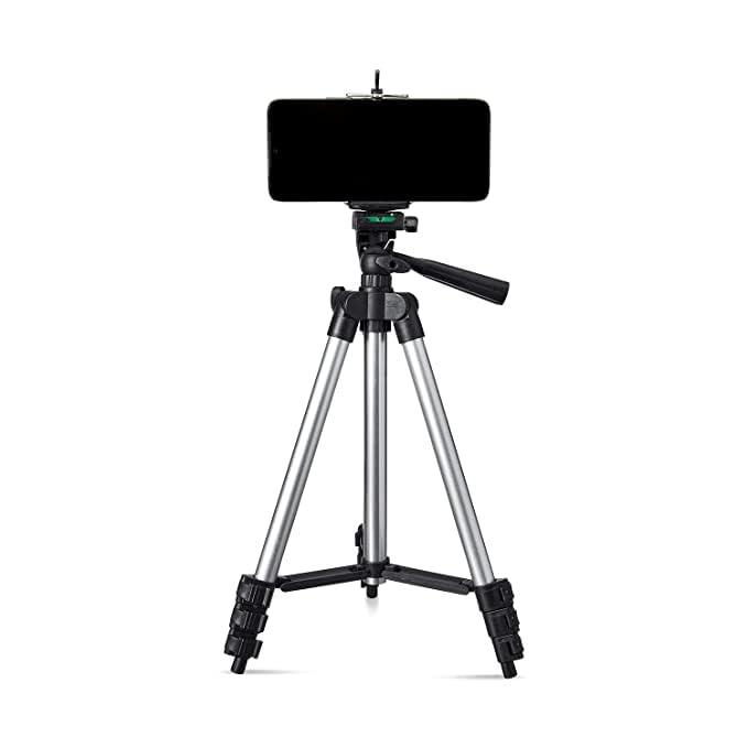 Introducing the Aluminium Lightweight Tripod on amazon. This product is compatible with a wide range of devices including smart phones, cameras, ring lights, panel reflectors, umbrellas, flash lights, and more. It weighs only 400 grams and hence, is easy to carry around. You can adjust the tripod up to 110 cm without hampering its stability. It has a 3-way pan head with a tilt motion which allows you to adjust the angle of the camera to get the perfect shots. The tripod is perfect for beginners as well as you can easily set it up and pack it away. This also makes it perfect for on-the-go photography. It has a maximum load capacity of 1-2 kg
