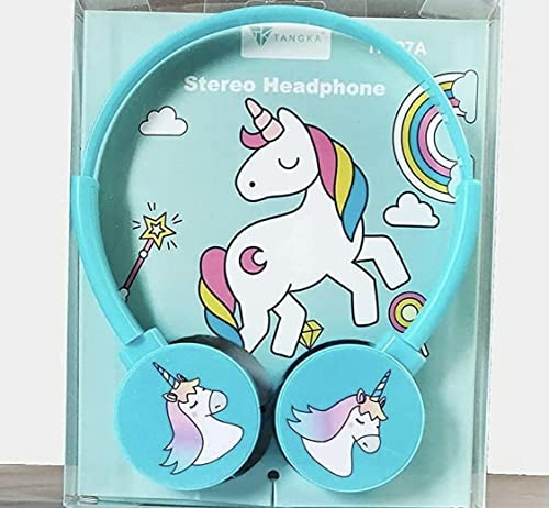 Unicorn Girls Wired Headphone 3.5mm Jack Bass Booster Foldable Adjustable On-Ear Headphones Earphones for Kids School, Online Classes Learning, Travel, Music Pink/Blue Random Color