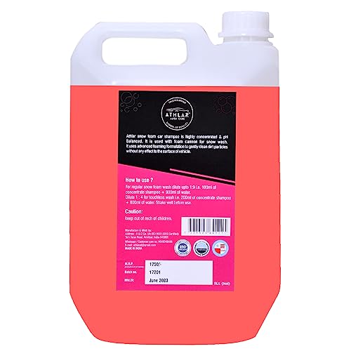 ATHLAR Snow Foam Concentrate Car Shampoo 5Ltr – pH Neutral, Works With Both Bucket Wash And Foam Cannon