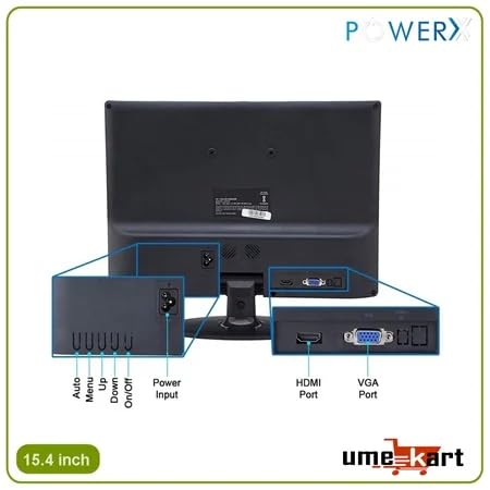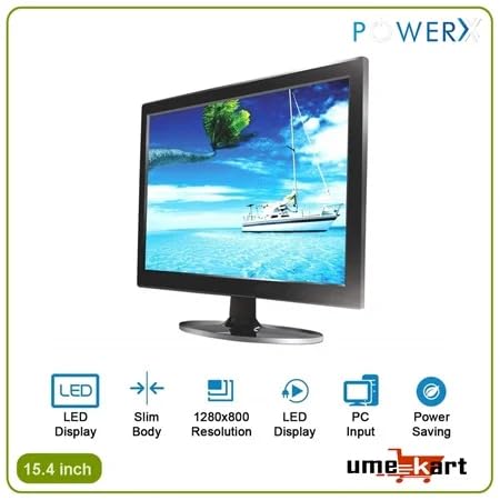 Sales Pack: 1 pcs 17.4 inch PowerX Monitor Brand: PowerX Colour: Black Body Material: Plastic Model No: PLEM0WB-154 Display Resolution Max: 1280 x 800 pixels Display Technology: LED Batteries Required: No Product Dimension: 49.5 x 41 x 9 cm; 1.8 Kilograms Connector Type: VGA, HDMI Size: 17 Inch Display Technology: LED Generic: Monitor Origin: India