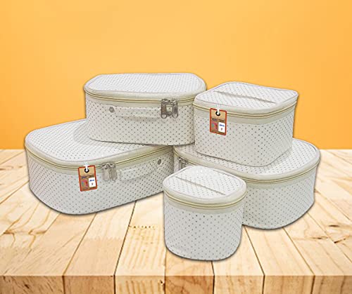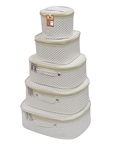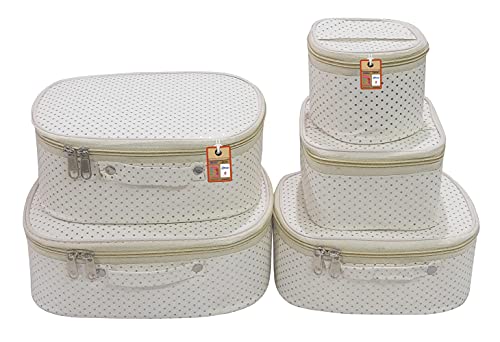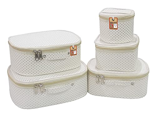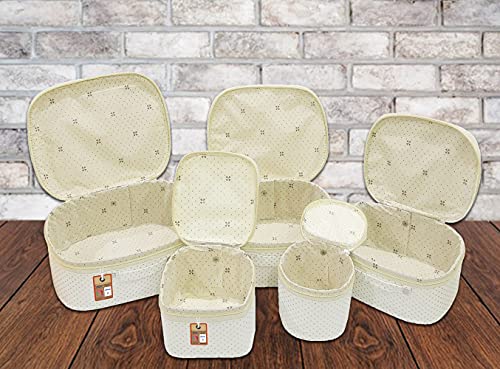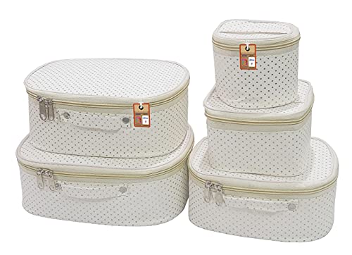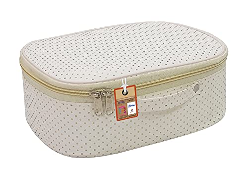 atorakushon Fabric Dotted Cream Makeup Storage Box Travelling Vanity Cosmetic Toiletry Bag Necklace Wardrobe Organizer Jewellery Pouch for Women