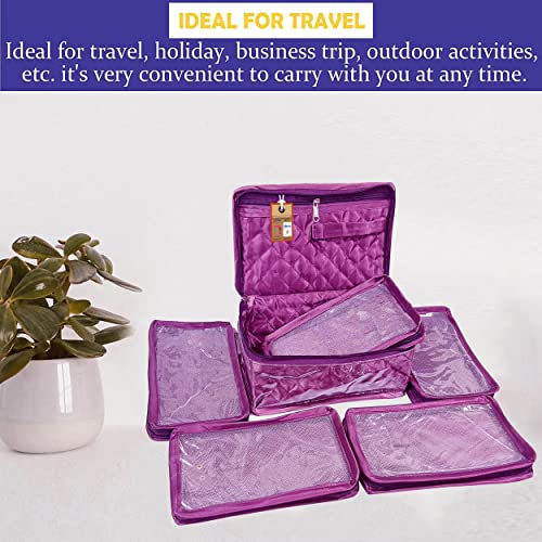 atorakushon Satin Makeup Pouches Cosmetic Necklace Earrings Vanity Jewelry Organizer For Women’s (Purple)
