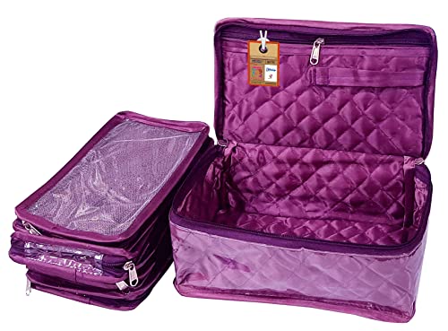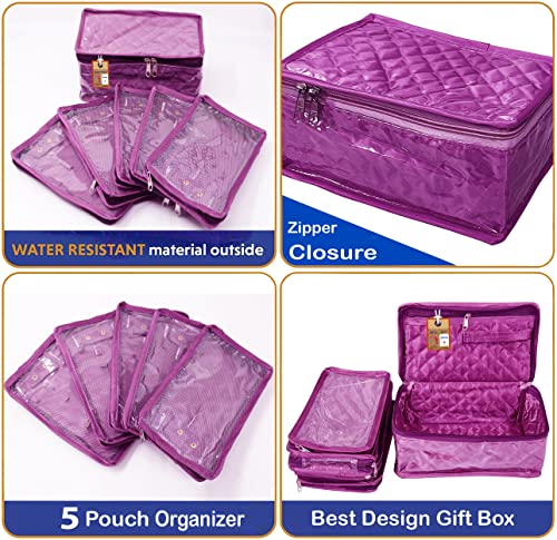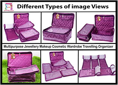 atorakushon Satin Makeup Pouches Cosmetic Necklace Earrings Vanity Jewellery Organizer for Women’s (Purple)
