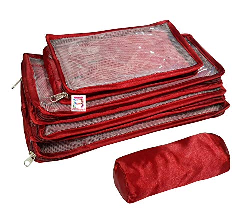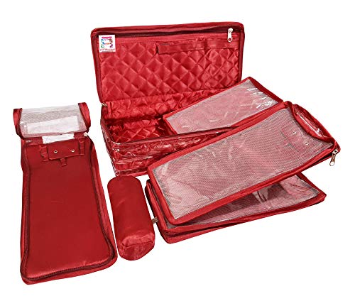 atorakushon Satin Maroon Combo Make-Up Pouch Jewellery Bangle Necklace Organizer Ring Box and Earrings Folder Half Set Bag for Women