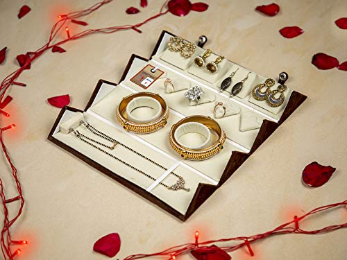 The interior of the container is exquisitely created. This followed as 4 Pair earrings, 5 Rings, 2 Bangles, and 1 Chain Slot organizer.