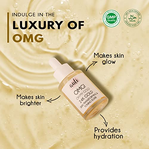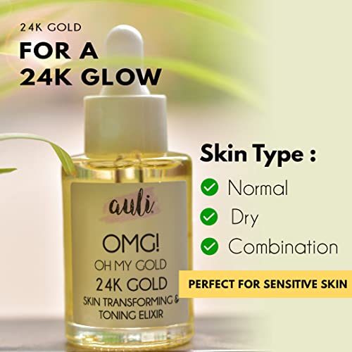 Auli 24K Gold Flakes with Pure Rosehip Facial Oil for Noraml to Dry Skin Types | Prevents Ageing and Hydrates Skin | Glowing and Radiant Skin | Facial Oil for Men and Women | OMG – 30ML