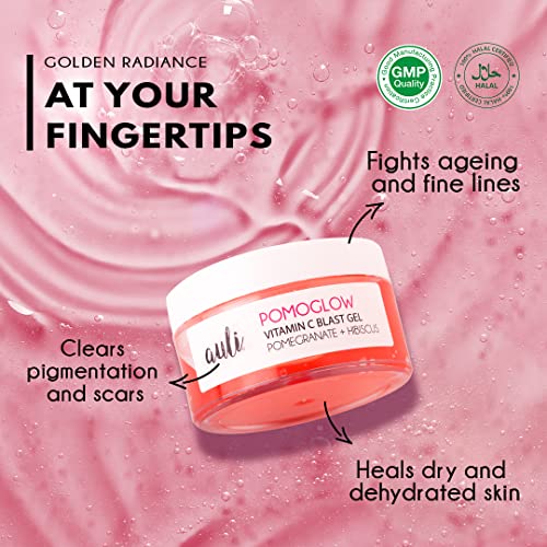 Auli Vitamin C Daily Face Gel for All Skin Types | Multipurpose Vitamin C and Pomegranate Non-Sticky Gel for Glowing and Hydrated Skin | Pomoglow – 50GM