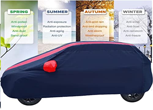 Auto Hub Car Cover Compatible with Hyundai Verna Fluidic (Model : 2013-2017) with Mirror Pockets, Triple Stitched, Navy, Red, Water Resistant Car Body Cover