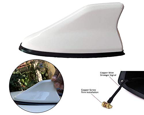 Auto Pearl Shark Fin Antenna Universal Replacement Car Antenna Roof Aerial ABS Material Waterproof Rubber Ring AM FM Radio Signal Compatiable with – I10 Grand 2017 – (Color White)