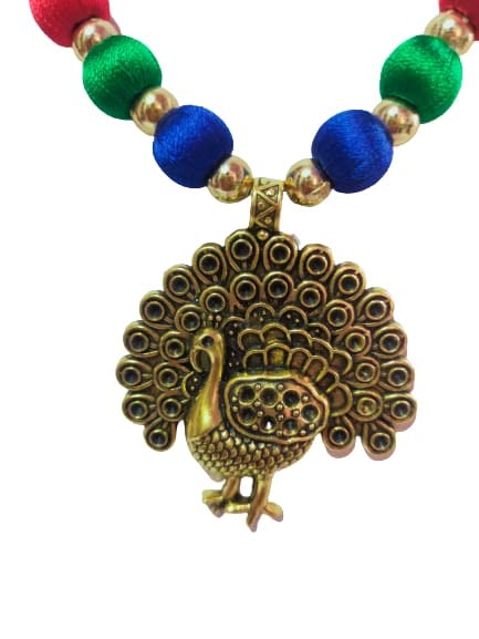 Avani Collection Multicolour Necklace Silk Thread Jwellary Earrings Jewellery Set for Women