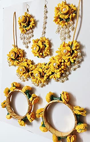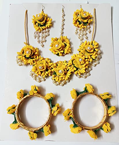 Ayan Collection Artificial Flower Jewellery Flower Jewellery Set for haldi | Mehndi | Baby Shower| Earrings, Mangtika.