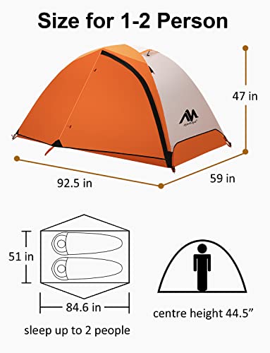 Backpacking Tent 2 Person -AYAMAYA Double Layer Waterproof Screen Tents with Removable Rainfly,Lightweight Aluminum Frame Freestanding Hiking Tent for 1 to 2 Person Easy Setup for Camping Backpack