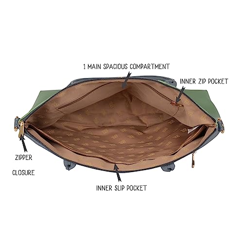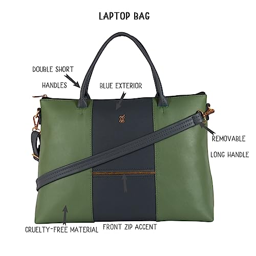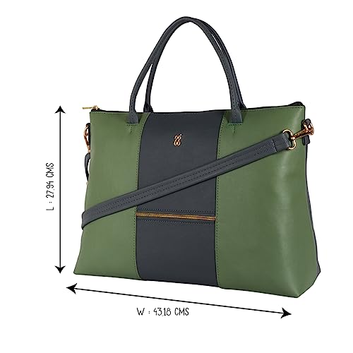 This is the perfect work bag you’ve been looking for! It opens to a spacious compartment inside to keep your keep your precious laptop, papers and files organized. Raise your style quotient in office to a whole new level of WOW with this convenient, yet chic bag. Blue exterior Front zip accent Laptop bag 1 main, spacious compartment Inner zip pocket Inner slip pocket Easy access back zipper Double short handles Removable long handle Size: L Cruelty-free material 6 months warranty on non-discounted/fresh merchandise Made in India Leading fashion handbag brand since 30 years