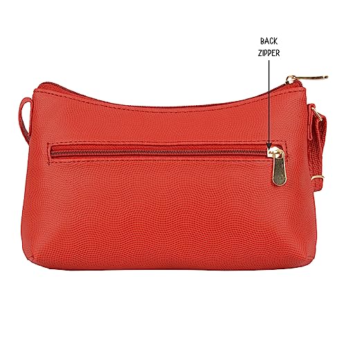 Your simple outfits need an uplifting sling bag like this one! Sling it across your body and look every bit like a celebrity. It’ll also keep your mini items close to you when you’re in and about the city. Orange exterior Sling bag Textured body 1 main compartment Inner zip pockets Easy access back zipper Long adustable handle Size: XXS Cruelty-free premium material 6 months warranty on non-discounted/fresh merchandise Made in India Leading fashion brand since 30 years