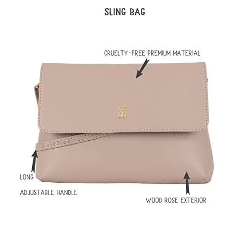 Wood Rose exterior with 1 main compartment I 2 total number of pocket I Zipper closure I Cruelty-free premium material.