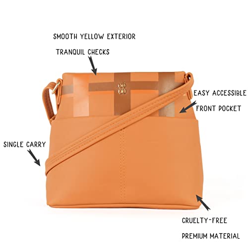 This sling bag is quite huggable owing to its super soft material! With a cool and colourful chequered print and a quick access outer pocket for safety essentials, this sling bag is sure to pep up your wardrobe.