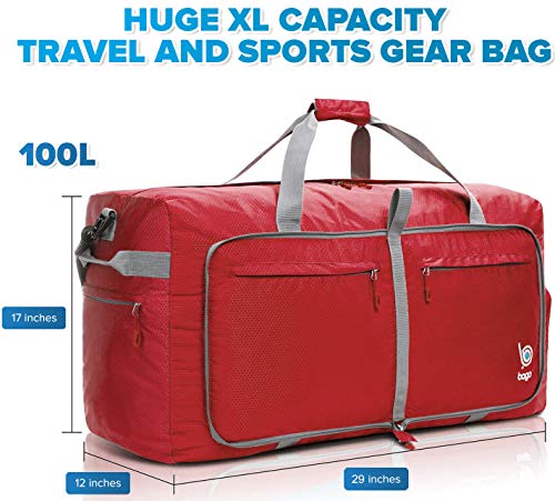 Bago 100L Travel Duffel Bags for Men & Women – 29″ X Large Duffle Bag Luggage (Red)