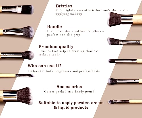 Bronson Makeup Brush Set is the all in one makeup brush kit that has everything a makeup lover needs. The professional quality, tightly packed bristles make it durable and ensure it does not break/shed easily while applying makeup or at the time of cleaning. Each makeup brush in the kit is crafted with luxuriously soft bristles that feels super gentle on your skin and a ergonomic handle that provides you perfect grip and control over the brushes while applying product. These brushes have been designed to pick up the right amount of product with least possible wastage and blend uniformly promising a flawless base. What’s more? They are 100% cruelty-free and made from synthetic filaments. This also makes it a great choice for people with allergic reaction to animal hair. It comes in a nice gift box packaging. Ideal gift for your loved ones. Now get the desired results in fewer and simple strokes with this Makeup Brush Set to turn some heads on your way!