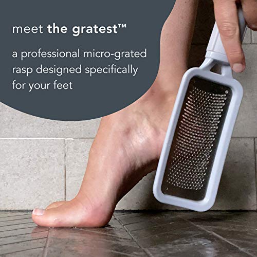 Looking for a foot rasp callus remover? Remove layers of dead, tough and callused skin with little effort. The Gratest professional micro-grated foot rasp is designed with a comfort-grip handle and an ergonomically curved, extra large filing surface for quick callus removal and overall foot care. Tiny protected blades glide smooth over wet or dry skin to reveal your softest, smoothest skin. Because nothing in life should be hard, including your feet.