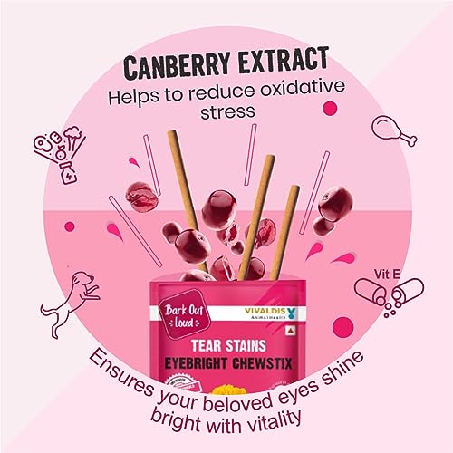 Bark Out Loud by Vivaldis – Tear Stains Eyebright Chewstix | Active Marigold Extract, Rich in Omega FA for Dog, 100 gm Dog Treats
