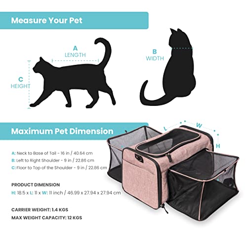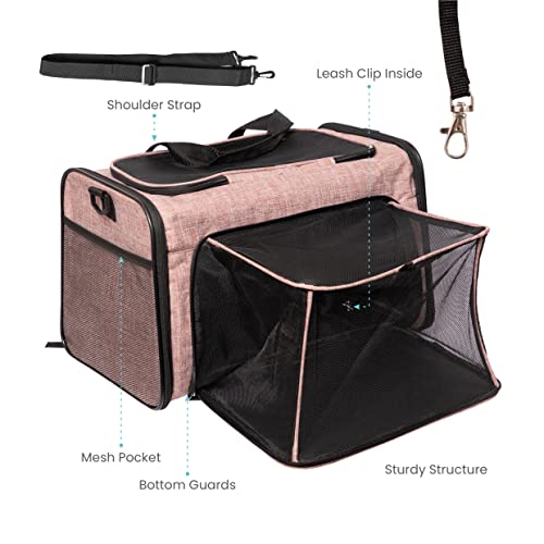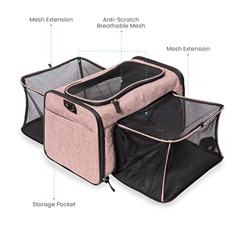 Barkbutler x Fofos Expandable Foldable Carrier, Pink |Anti-Scratch Breathable mesh + Padded Base | Sturdy Structure + Metal Leash Clip and Durable Zippers | Foldable for Road Travel + Storage Pockets