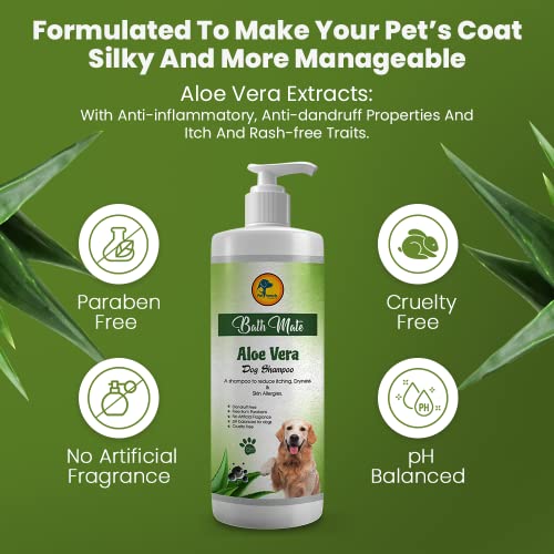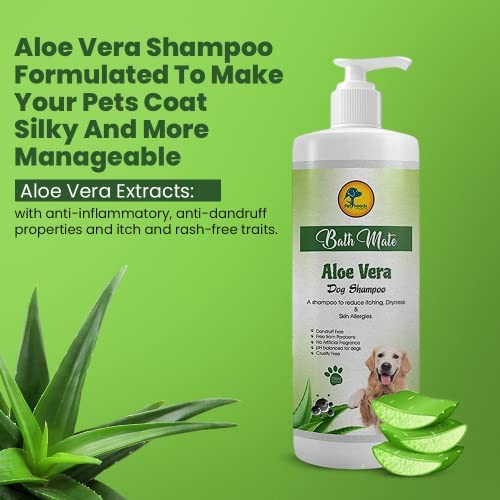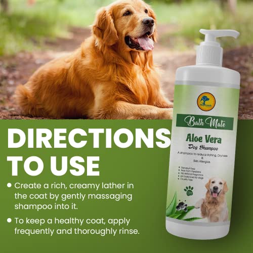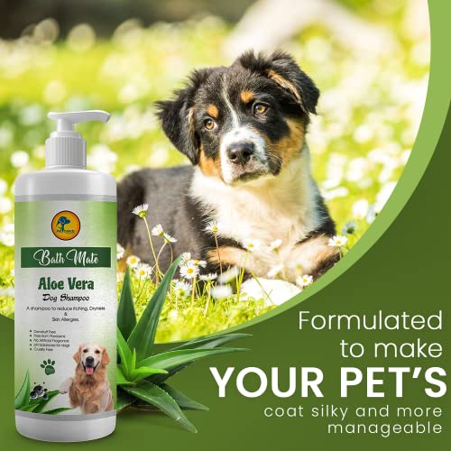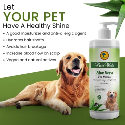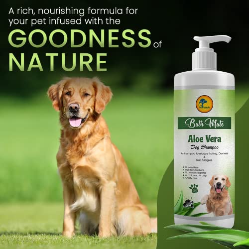 Bathmate Aloe Vera Anti Dandruff Ph Balanced Dog Shampoo Hydrates & Conditions, Non-Allergic, Removes Odor | Moisturized Shiny Coat for Soft Furry Dogs, Labrador, German Shepherd, Golden Retriever | Pet Bathing -250ml