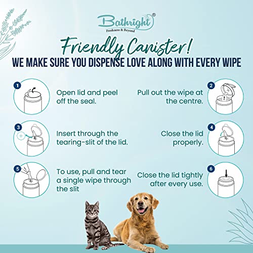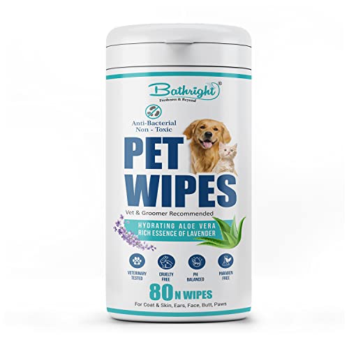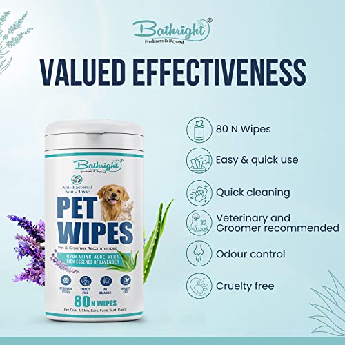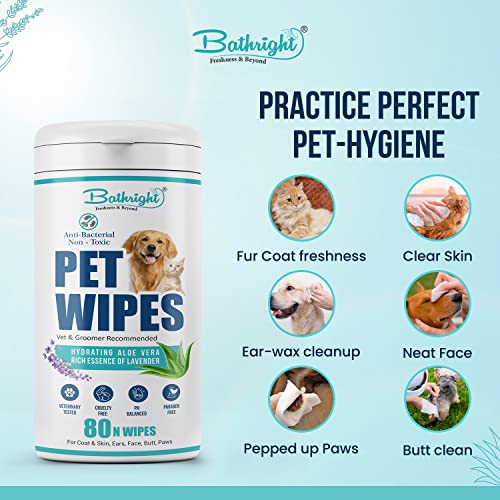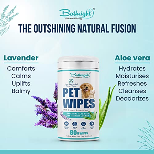 BATHRIGHT Pet Wipes | 80 N Multipurpose pet Wipes | Aloe Vera & Fresh Lavender | pH Balance, Natural | for All Pets | Wet Wipes for Cleaning & Deodorizing | Hygiene Cleaning Essentials