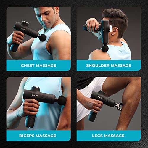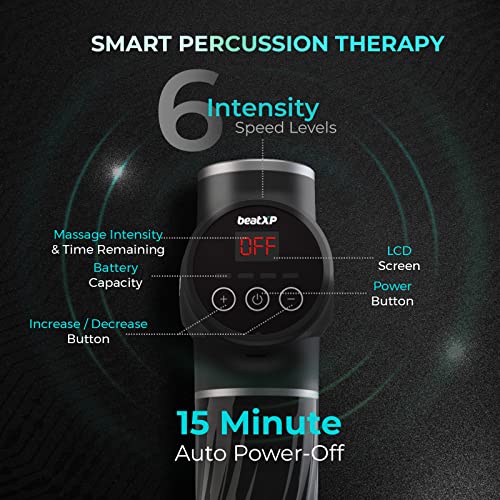 beatXP Bolt Go Massage Gun |Body Massager Machine for Pain Relief |Touch Display- Percussion Gun Back Massager for Men & Women with 4 Attachments (4000mAh Battery) & up to 18 Months Warranty (Jade Black)