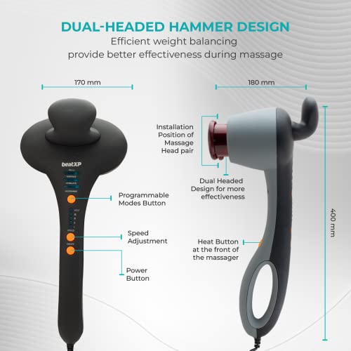 beatXP Thunder Pro Double Headed Full Body Pain Relief Massager with Infrared – Deep Tissue Massage – Acupressure for Relaxation – Back, Leg, Foot & Body Massager with up to 18 Months Warranty (Jade Black)