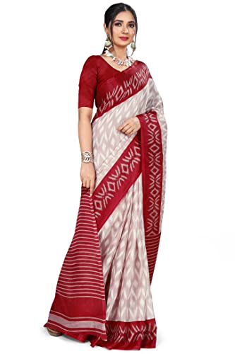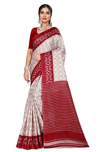 Bee M Pee Designer Women’s Khadi Cotton Printed Saree with Blouse Piece (Cotton 1007 ZIG ZAG SARI)