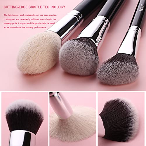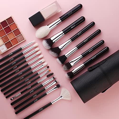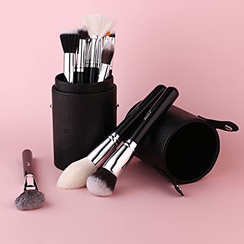 BEILI Makeup Brushes 20Pcs Professional Makeup Brush Set Original Natural-Synthetic Kabuki Foundation Face Powder Highlighter Contour Eye Shadow Eyebrow Eyeliner Cosmetic Bag Cosmetic Bucket (Black)