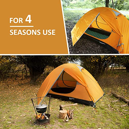 Bessport Camping Tent 1 and 2 Person Lightweight Backpacking Tent Waterproof Two Doors Easy Setup Tent for Outdoor, Hiking Mountaineering Travel
