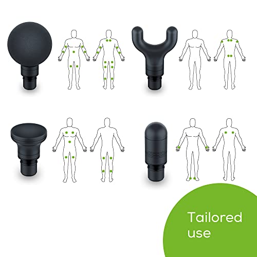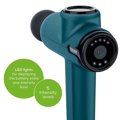 Beurer MG99 Compact Massage Gun, Mini Deep Tissue Massager with 4 Attachments, Powerful Trigger Point Massage to Relieve Tension, Handheld Massager with 5 Intensity Levels, Rechargeable Battery With Premium Color