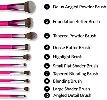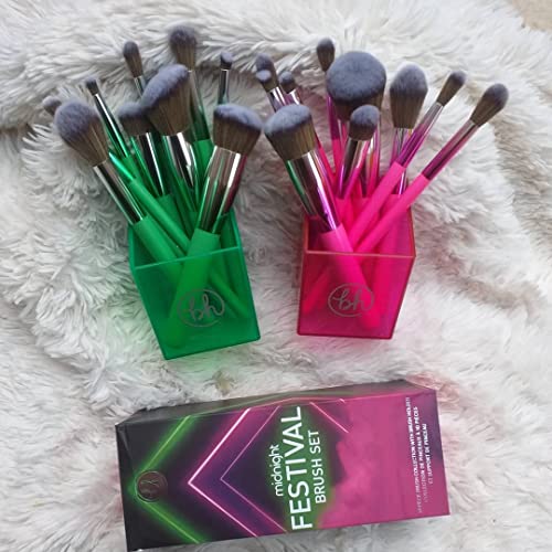 BH STUDIO PRO makeup brush set, Midnight Festival Brush Set 10 Piece Brush Collection with Brush Holder (PINK)