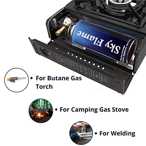 BisonBerg Butane Gas Canister 225g to Refill Flame Lighters, Small Stove, Flame Torch, Welding Fuel Gas, Camping Stove (with Universal Nozzle/Pin)