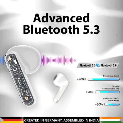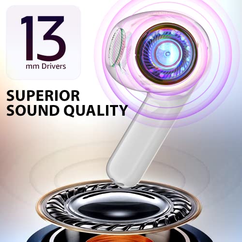 Advanced Bluetooth 5.3 Version: The wireless earbuds are getting 2x faster transmission speed with advanced BT 5.3. The range between BT earbuds and BT devices is above than 30ft away, more stable connectivity with no signal loss or music dropout.