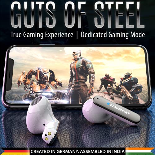 Blaupunkt BTW100 KHROME Bassbuds Truly Wireless Bluetooth Earbuds I HD Sound I Gaming Mode I Low Latency I 30H Playtime* I TurboVolt Charging I BT Version 5.3 I Intuitive Touch Controls (White)