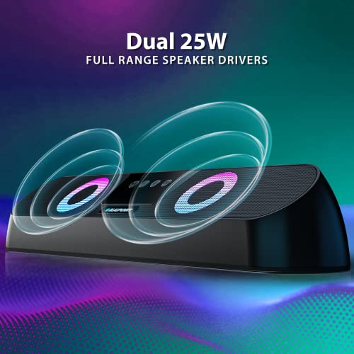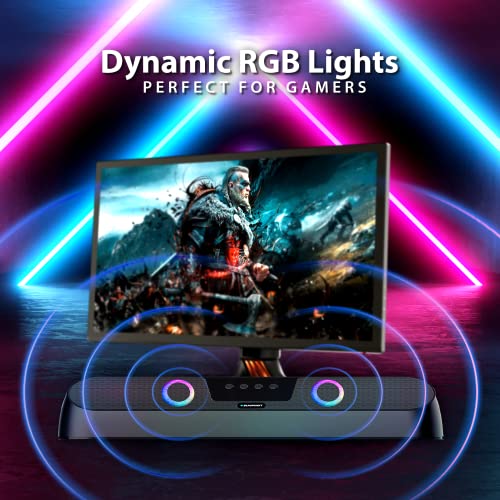 RGB Lights: Enhance the game with lights! The colorful RGB lighting enhances the music experience and game dynamics experience. You can turn on/off the LED light by the control button on the sound bar. Perfect for your monitor /Games/Movies/Music