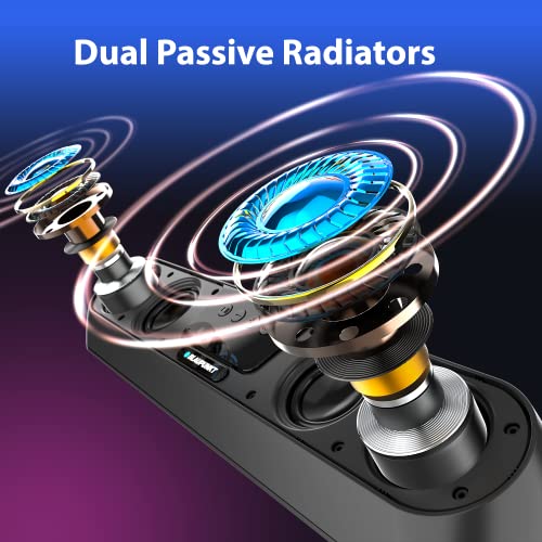 Powerful HD Sound: The Dual high-quality speakers and passive radiators with 2000mAh battery delivers crystal clear surround sound, which bring you an immersive sound experience
