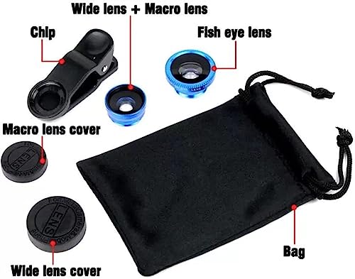 BLAXSTOC 3in1 Set Mobile Professional HD Camera Lens: 180° Fisheye Lens+Wide Angle+10x MM Macro Lens with Bag Clip Holder Kit for All Smart Phones, Tablets, iOS, Android & Mobile Stand Free