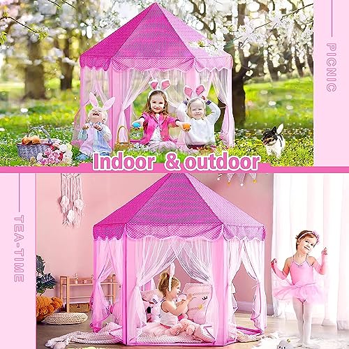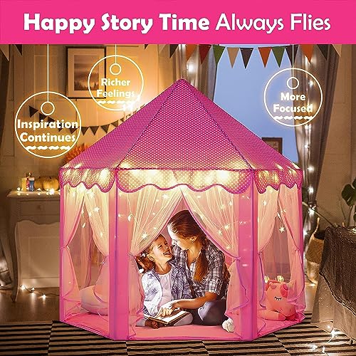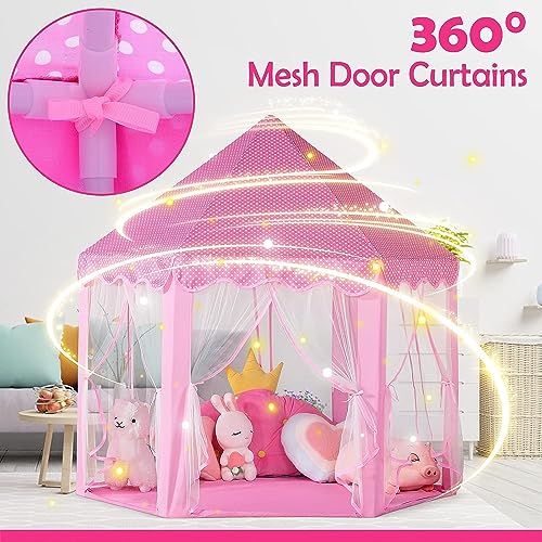 BLEQYS® Princess Castle Tent for Girls Fairy Play Tents for Kids Hexagon Playhouse with Fairy Star Lights Toys for Children or Toddlers Indoor or Outdoor Games