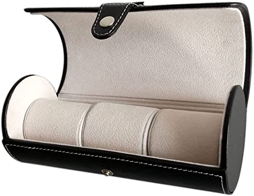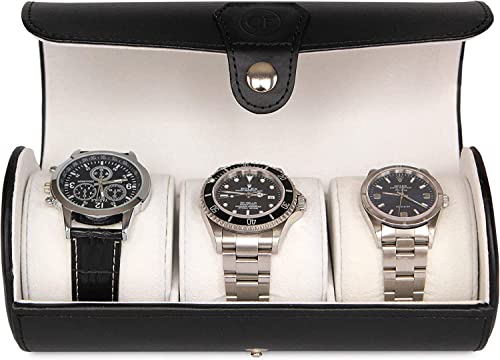 BluBasket Travel Watch Organizer Watches Case Pouch Jewelry Box 3-Slots Pu Roll Traveler’s Watch Organizer Case Box, Black