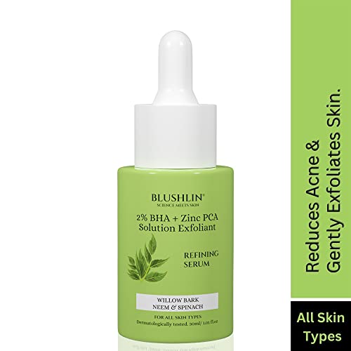 BLUSHLIN 2% Salicylic Acid Serum for Acne, Oily Skin, Open Pores & Blackheads | Face Serum for Acne and Dark Spots for Men & Women | Reduces Excess Oil & Bumpy Texture | BHA Based Exfoliant | 30 ml