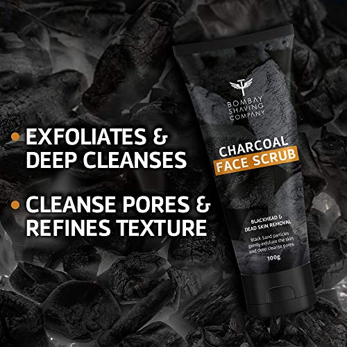 Bombay Shaving Company Charcoal Face Scrub with Black Sand, Exfoliates skins & Removes Black Heads, Black, 100 g