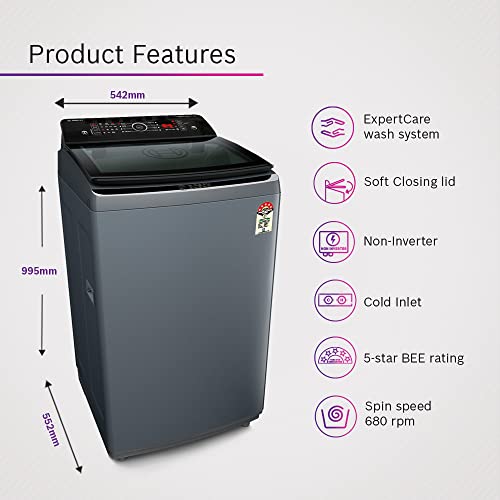 Bosch 6.5 kg 5 Star Fully-Automatic Top Loading Washing Machine (WOE651D0IN, Dark Grey, Expert Care)