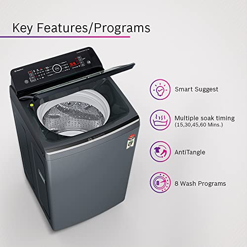 Wash Programs: 8 wash programs – Smart suggest, Quick wash, Mix, Delicates, Bedsheet, Whites, Cotton 30°, Tub clean| Panel – touch panel