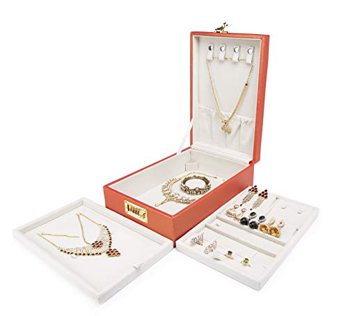 Box Queen All In One Jewellery Jewel Locker Set Box Organizer Box Gift Box for Women and girls for Necklaces Earring Ring And chains Bangel Box with 2 Trays (Colour May send Randamly Vary)